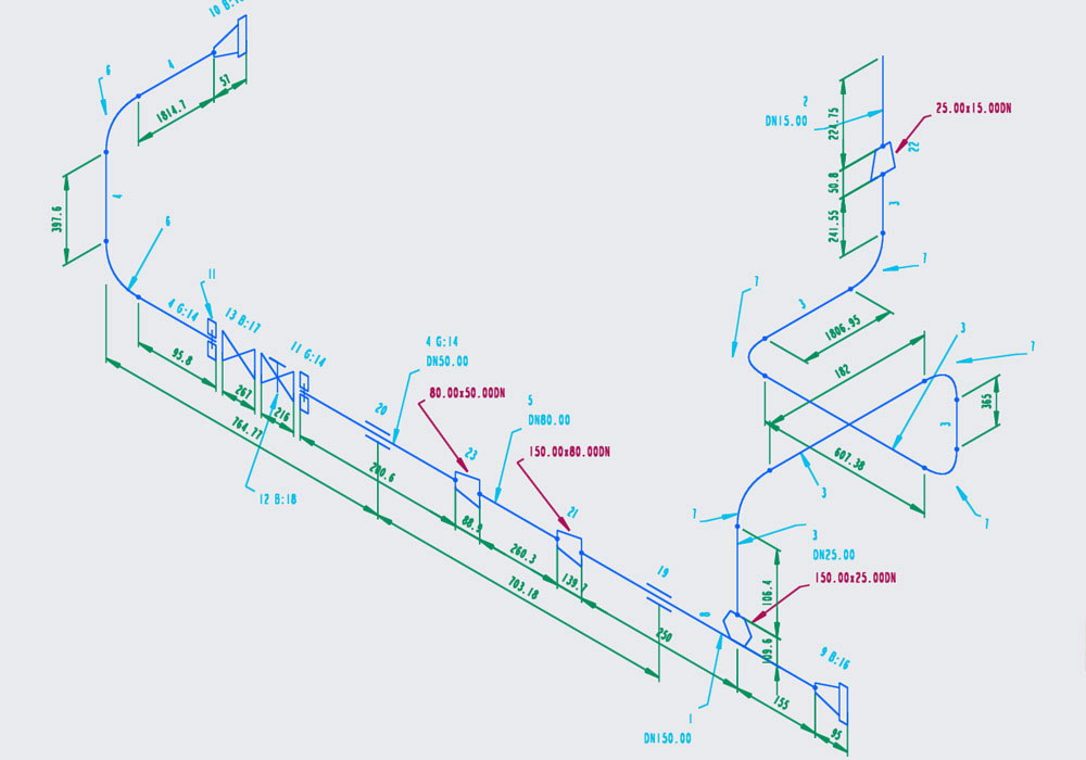 Con M4 PLANT è possibile esportare dal 3D un intero progetto, singole parti di esso o componenti su disegni 2D dettagliati. L’utente può esportare gli elementi 3D visibili o selezionati come disegno 2D in dettaglio. E’ anche possibile esportare il progetto completo su un disegno 2D con più viste e sezioni. Per dettagliare il disegno, l’utente dispone di una vasta gamma di strumenti per aggiungere dimensioni e annotazioni.